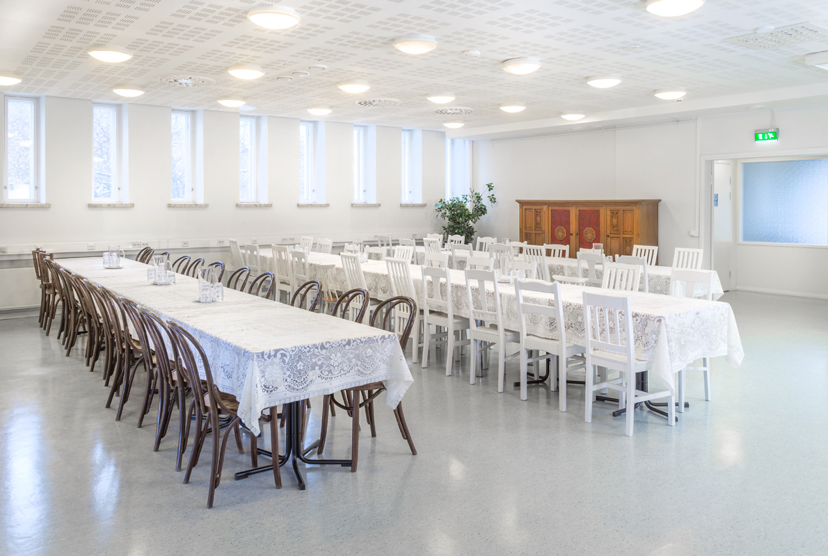 Suureen saliin voidaan järjestää isokin kokous. Saliin mahtuu max 235 henkeä.